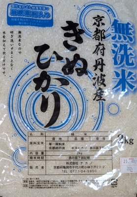 亀岡の太陽の恵み・土の恵み・水の恵みがいっぱいに詰まった白く光り燿く京都丹波・亀岡産キヌヒカリを無洗米加工し、つきたての風味を損なわないように真空包装しました。