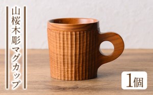 <日本製>山桜木彫マグカップ(高8cm×横7.5cm×長11cm、容量約200cc)【GURI工房】