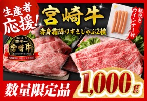 【令和8年2月発送分】生産者応援!宮崎牛 赤身霜降りすきしゃぶ2種1,000g+粗挽きウインナー