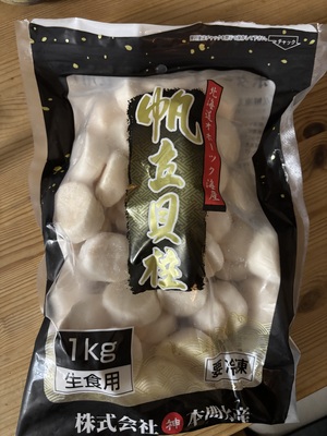 ホタテ1キロはやっぱり重い。ホタテを買うことは滅多にないので量に圧巻しました。訳アリの不揃いとは言いつつも粒も揃っているし、こんなに大量に買うことはないので贅沢な限りです。味も当然美味しい。でも何が訳ありなんだろうか?