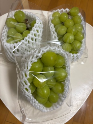 美味しいシャインマスカットでした。3房いただきました。1房は茎が茶色っぽく、実が落ちていて少し古い感じもしましたが、味はよかったです。