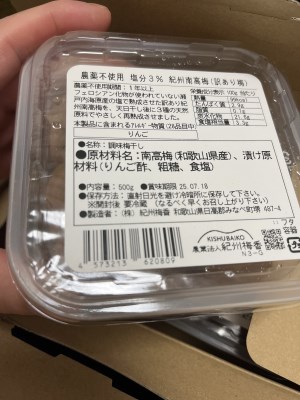 2月29日に申し込みの手続きをして、3月9日に届きました。原材料が和歌山県産の南高梅、リンゴ酢、粗糖、食塩だけで、塩分も控えめなので安心して食べられます。酸っぱさはほとんどないですが、梅の美味しさを味わえます。賞味期限は10月4日ですが、毎日つまんでしまいすぐ無くなりそうです。傷があったり色が良くないものもありますが、自宅用なので問題ありません。