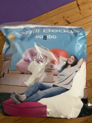 以前ふるさと納税でゲットしたヨギボーがクタクタになり、補充ビーズを注文しました。近くにヨギボーショップもあるのですが、やはりふるさと納税は自宅まで届けてくれるのがメリット。補充したビーズのおかげでヨギボーが復活しました。