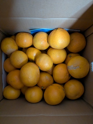 傷あり、と書いてますが、全然気にならなくてきれいでしたよ。最初は結構すっぱかったけど、置いておくと甘くなりますよ。量が多いのでいつまでも楽しめて大満足!11月に寄付して、1月に来て、4月に食べ終わったけど、今4月中旬に見たらまだあったのでまた寄付しました。
