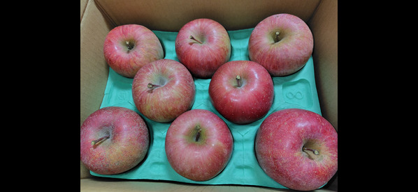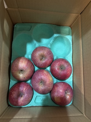 12月中旬に受け取りました。大玉のりんごが6個、ちょうどいい量でした。蜜が入っているものとはいっていないりんごがありましたが、甘味が強くシャキッとした歯応えを楽しめました。りんごの保存方法の案内書が同封されていました。