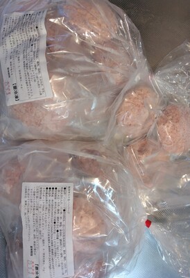 予想外に大きな箱で来たのでびっくりしました。1個づつパックされた丸いハンバーグが10個入りの袋が2袋と3個入りがひとつ入ってました。