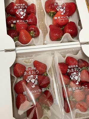 昨年年末に予約という形であまおうをお願いして、先日香り良い苺が4パック届きました。大きめの苺がたくさんあり、味わいながら美味しくいただきました。子供達も今年も頼んでと、大喜びでした。本当ありがとうございました。