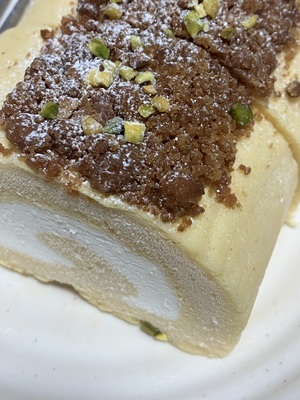 お芋を使ったスウィートポテトロール?初めて聞くロールケーキでしたし味はどうなの?と思いましたが送られてきて実際に食べてみたところまさにスウィートポテトではないですか!さらに上に乗ったクランブル?がふんわり生地とのハーモニーでお口の中が幸せいっぱいになりました、コーヒーにも合ってあっという間に完食してしまいました!また頼みたいです!!