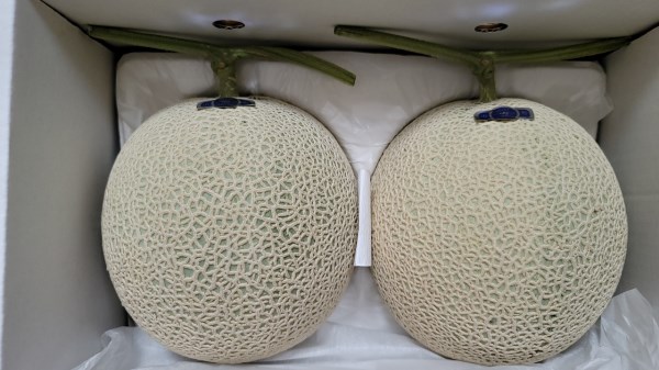 写真の通り、立派なメロンが2つ入っていました。食べ頃の日にちが書かれたカードが入っていて、食べる直前までは、常温で保存とのこと。