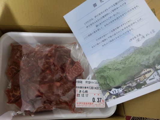 毎年、肉類(薄いもの)の返礼品は伊万里市で同じものをリピートしています。サイコロステーキは初めて頼みましたが、写真のような赤みがかったモノではなかったです。肉もかたかったです。たまたまかもしれませんが、あまりお勧めできません。
