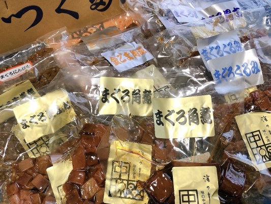 マグロの佃煮は酒のつまみにも、ホカホカごはんにもとてもあうので、いただきました。いろいろな種類の佃煮がありましたが、どれもおいしかったです。味はしっかりついていて、甘辛いのですが、とてもおいしかったです。