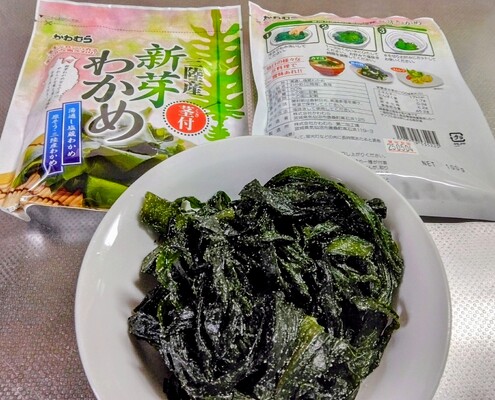 新芽のわかめお送りいただきました。小分けサイズなので使いやすいです。割と塩多めかなという感じもしていますが、水にさらせば問題なく、そのままでもとても美味しいです。お味噌汁に入れたり酢の物にしたりしています。