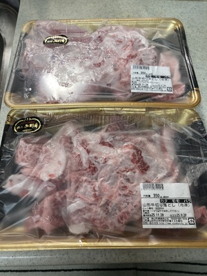 切り落としなので絶対に硬いと思い手で刻んだミンチにしてハンバーグにしてしまいました。めちゃくちゃ美味しかったのですが、はっきり言って、しゃぶしゃぶやすき焼きで食べれるレベルでした。山形牛は美味しいし、こちらは良心的だと思います。