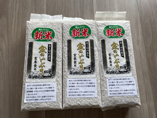 900gずつに分けて真空パックで届きましたので保管もしやすそうです。金のいぶきは食べやすく、白米と同じ炊き方でいいということもあり気軽に玄米を楽しめるのがいいと思います。栄養もたっぷりで嬉しいですね。