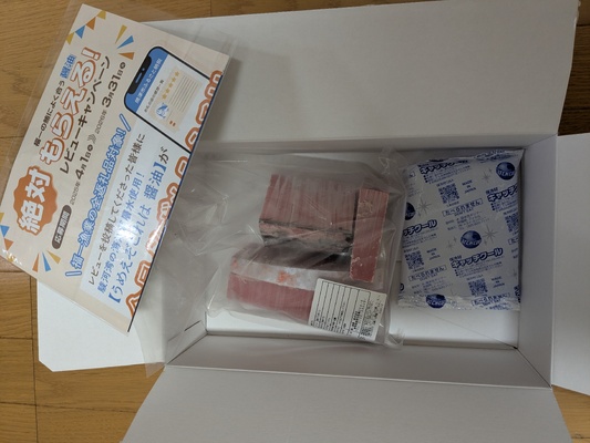 最初に食べたサクには大きめの骨もあってアレって思いましたが、残りのモノには骨はなくとても美味しい頂きました。家族も満足しており、また頼みたいねと話しています。量もある程度あるので何度かに分けて頂きました。満足です。