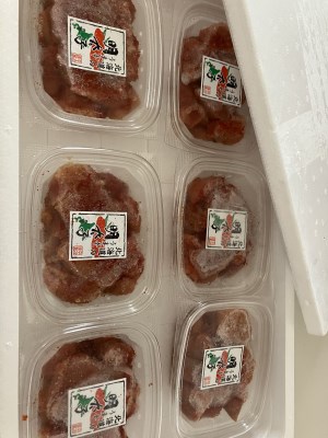 寄附を完了してから大体3週間程度で到着しました。小分けでプラスチックの箱に入っているので便利です。小分けでないと食べる分だけ解凍するのに手がベタベタになったり痛んでしまったりするので、それがないのが嬉しいですね。
