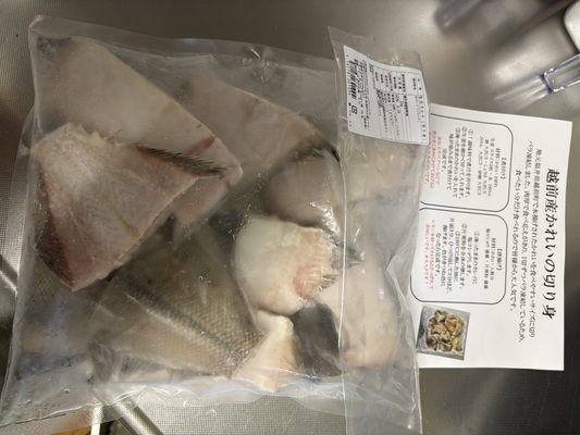 今回初めて越前町のカレイをいただきました。煮付けのレシピ通り調理していただきましたが、身も柔らかくとてもおいしかったです。量もたっぷり入っていて、とてもお得感がありました。