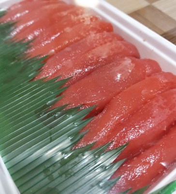 ま〜着色はどのたらこでもあるが、赤過ぎる。また、かなり小粒。